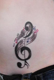 女生腹部黑色几何简单线条英文和卡通熊纹身图片