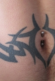 女生腹部彩绘几何简单线条潜艇纹身图片