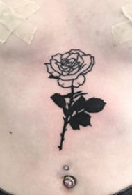 男生腹部黑色简单线条植物文艺玫瑰纹身图片