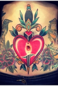 腹部匕首和红色心形纹身图案