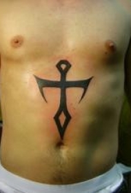 腹部黑色锋利的十字架纹身图案