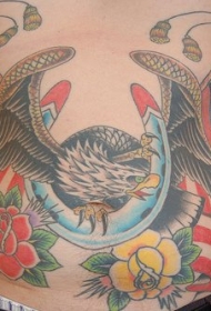 腹部彩色老鹰与美国国旗纹身图案