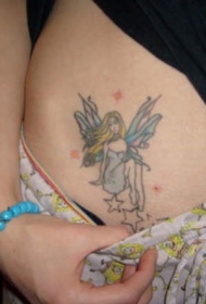女生腹部漂亮的精灵和星星纹身图案