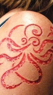 大臂上个性另类的章鱼图腾割肉纹身