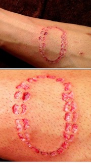 手臂上另类的牙齿印割肉纹身