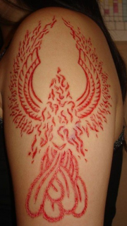 大臂美丽的凤凰皮肤割肉纹身图案