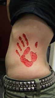 女生腰部割肉掌印纹身