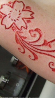手背到小臂割肉花卉纹身图案