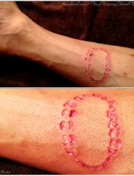 手臂上另类的牙齿印割肉纹身