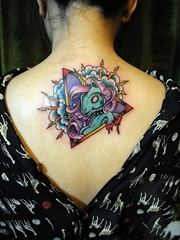 美女后背哥特小萌马纹身图案