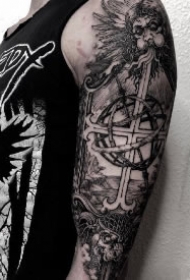 哥特派花臂正义天平雕像纹身图案