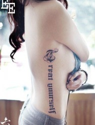 美女侧腰流行精美的哥特字母纹身图片