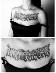 女人胸前超酷哥特字母纹身图片