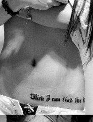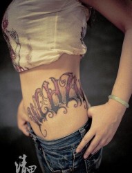 美女腹部到腰部前卫很酷的哥特字母纹身图片