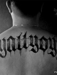 男生后背经典很酷的哥特字体纹身图片