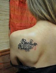 美女肩背好看的哥特字母纹身图片
