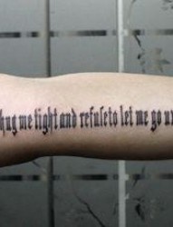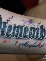 手臂一张石裂哥特风格字母加喷墨水滴效果纹身图片