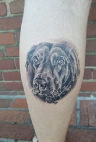狗的纹身图案 男生小腿上超写实的小狗纹身图片