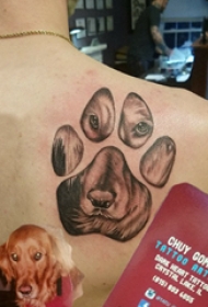 狗爪纹身 男生后背上小狗和爪印纹身图片