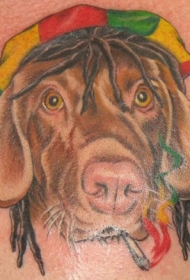 戴彩色帽子的狗头像纹身图案