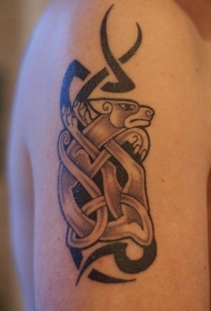 手臂部落图腾和狗纹身图案