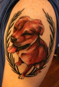 狗和树叶纹身图案
