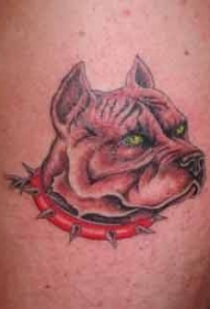 狗脖子戴尖刺项圈纹身图案