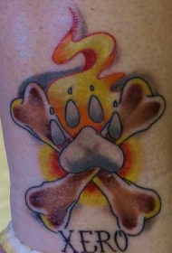 狗爪和交叉的骨头纪念纹身图案