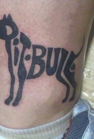 小腿有趣的狗形刻字纹身图案