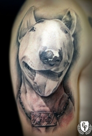 大臂现实主义风格的彩色狗肖像纹身图案