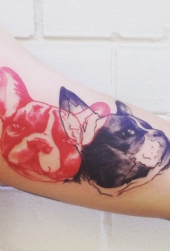 插画风格彩色两只狗头像纹身图案