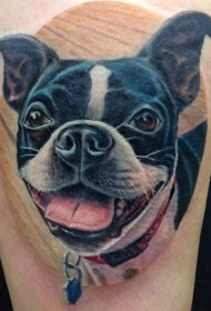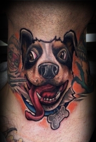 非常逼真的滑稽狗彩色肖像纹身图案