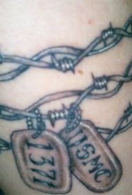 狗标签和铁丝网纹身图案