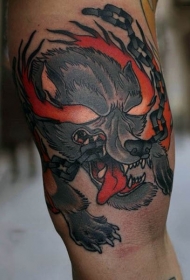 腿部恶魔狗和铁链纹身图案