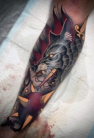 彩色恶魔狗和剑纹身图案