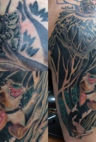 old school彩色黑森林和愤怒的狗纹身图案