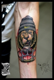 手臂new school彩色戴帽子的狗纹身图案