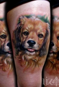 大腿写实风格彩色滑稽狗肖像纹身图案