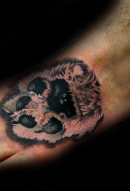 脚背逼真的彩色狗爪纹身图案