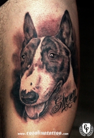 精致的写实风格狗头像字母纹身图案