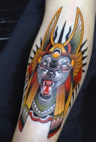 new school彩色埃及狗纹身图案