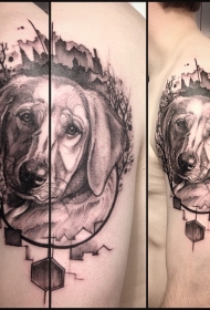 大臂悲伤的狗头部肖像纹身图案