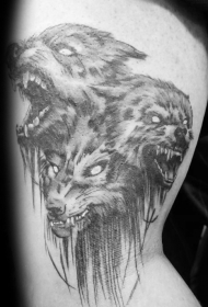 黑灰凶恶的三只狗纹身图案