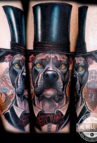 带帽子的大狗彩色纹身图案