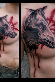 男子胸部攻击性狗皮肤撕裂纹身图案