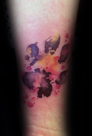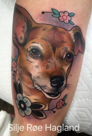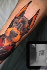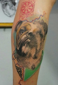 new school彩色逼真狗头像与像素符号手臂纹身图案