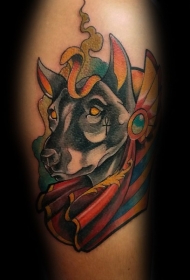 new school彩色神秘狗与埃及符号手臂纹身图案