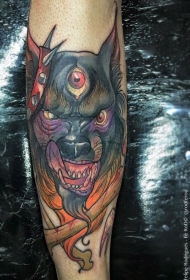 new school彩绘恶魔犬和骨头手臂纹身图案