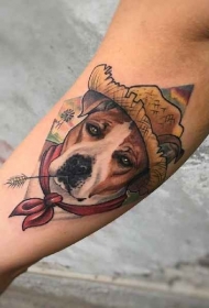 手臂彩色可爱的小狗与有趣的帽子纹身图案