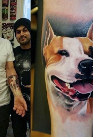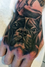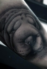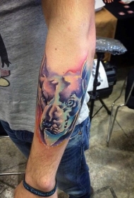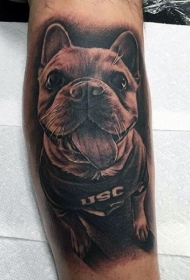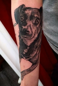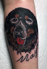 手臂戏剧性的纪念字母和狗头像纹身图案
